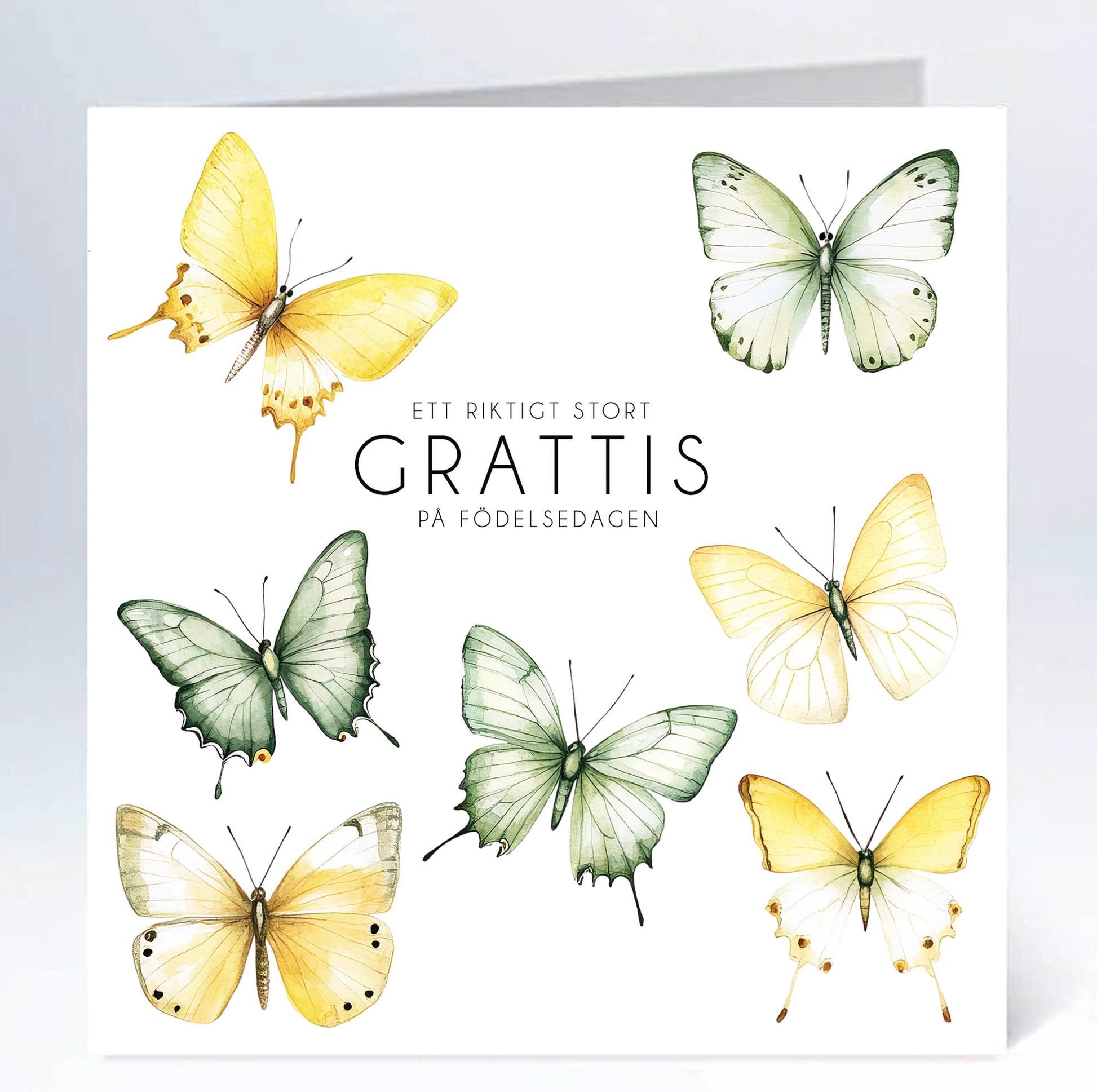 Stort kort 16x16cm Fjärillar i akvarell